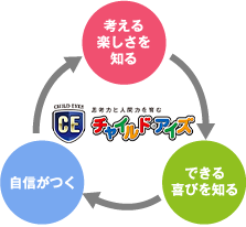 - チャイルド・アイズでは、一人ひとりの個性や能力を大切にしながら、目先の知識習得ではなく、学力が自然に育つだけの「こころの環境」を整えたり「脳の器」を拡げる、つまり、のびのびと考える楽しさを体験させてあげることを大切にしています。